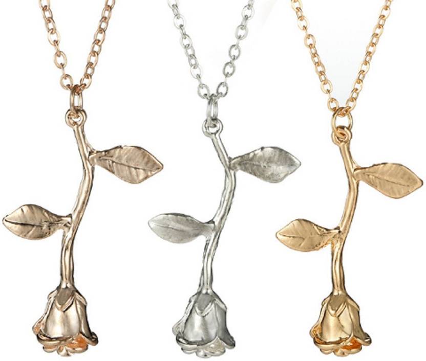 Its Combo Of 3 Rose Flower Pendant Chain Necklace Jewelery Silver Gold Rose Gold Gold Plated Silver Alloy Pendant Price In India Buy Its Combo Of 3 Rose Flower Pendant Chain Necklace Jewelery Silver Gold Rose