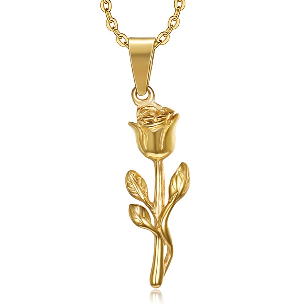Bobijoo Jewelry Pendant Necklace Flower Rose Love Steel Gold 16 90